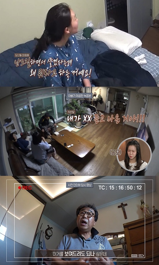아빠는 이러한 딸의 돌발 행동에 다급히 녹음기를 켠다. 혹시 모를 상황에 대비해 증거로 남겨야 한다고. 뒤이어 아빠가 공개한 녹음 음성에는 둘째 딸이 언니의 머리카락을 자르고 폭행까지 한 정황과 현장에 출동한 경찰에게 "감옥 가면 되죠!"라고 분노한 목소리가 포착돼 충격을 안긴다. 이에 아빠는 "작은딸이 폭언할 때면 섬뜩하다. 우리라도 살아야 하지 않겠나. 호적 정리까지 고민하고 있다"라고 최악의 상황까지 다다른 갈등을 드러낸다.