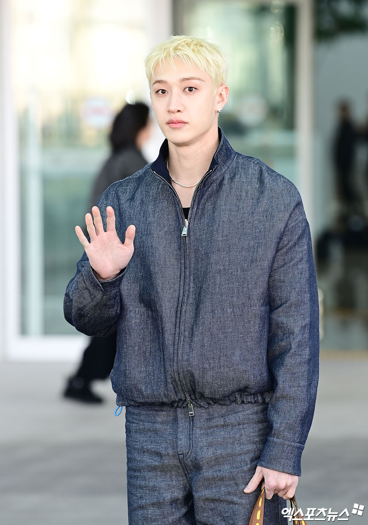 르세라핌 허윤진, 마네킹 비율로 완성한 청청 패션