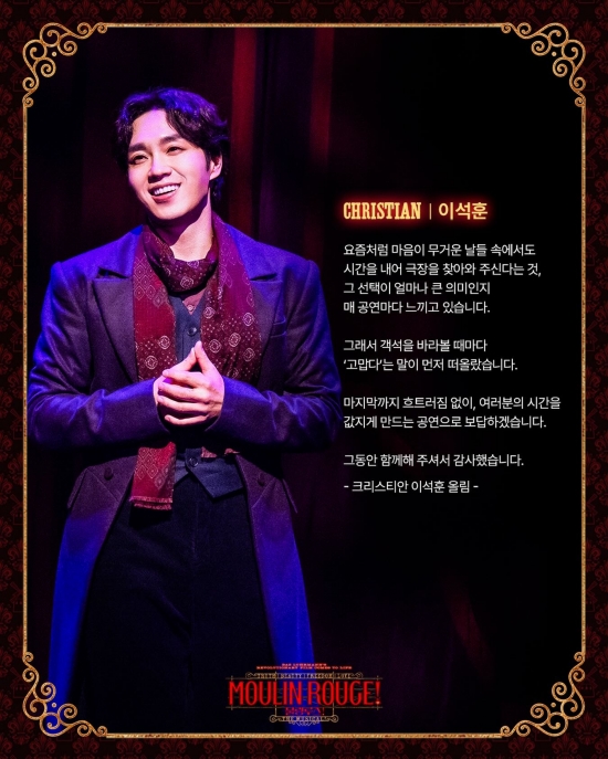 가수 이석훈이 뮤지컬 '물랑 루즈'를 종연한 소감을 밝혔다.