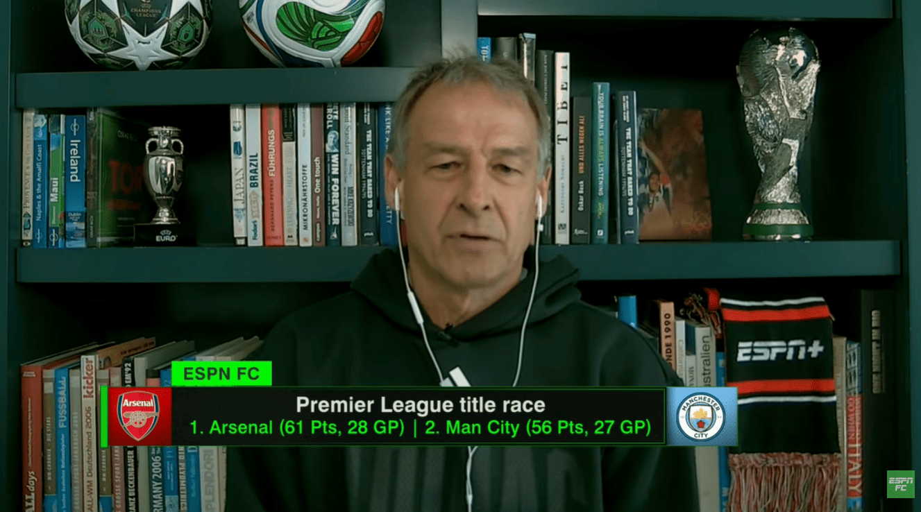 (엑스포츠뉴스 이우진 기자) 잉글리시 프리미어리그(EPL) 토트넘 홋스퍼의 레전드이자 2023년부터 2024년까지 대한민국 축구 국가대표팀(A대표팀) 감독을 역임했던 위르겐 클린스만이 토트넘의 북런던 더비 1-4 패배를 두고 안타까움을 드러내면서도 선수단의 '팀 스피릿(팀 정신)'을 강조했다.