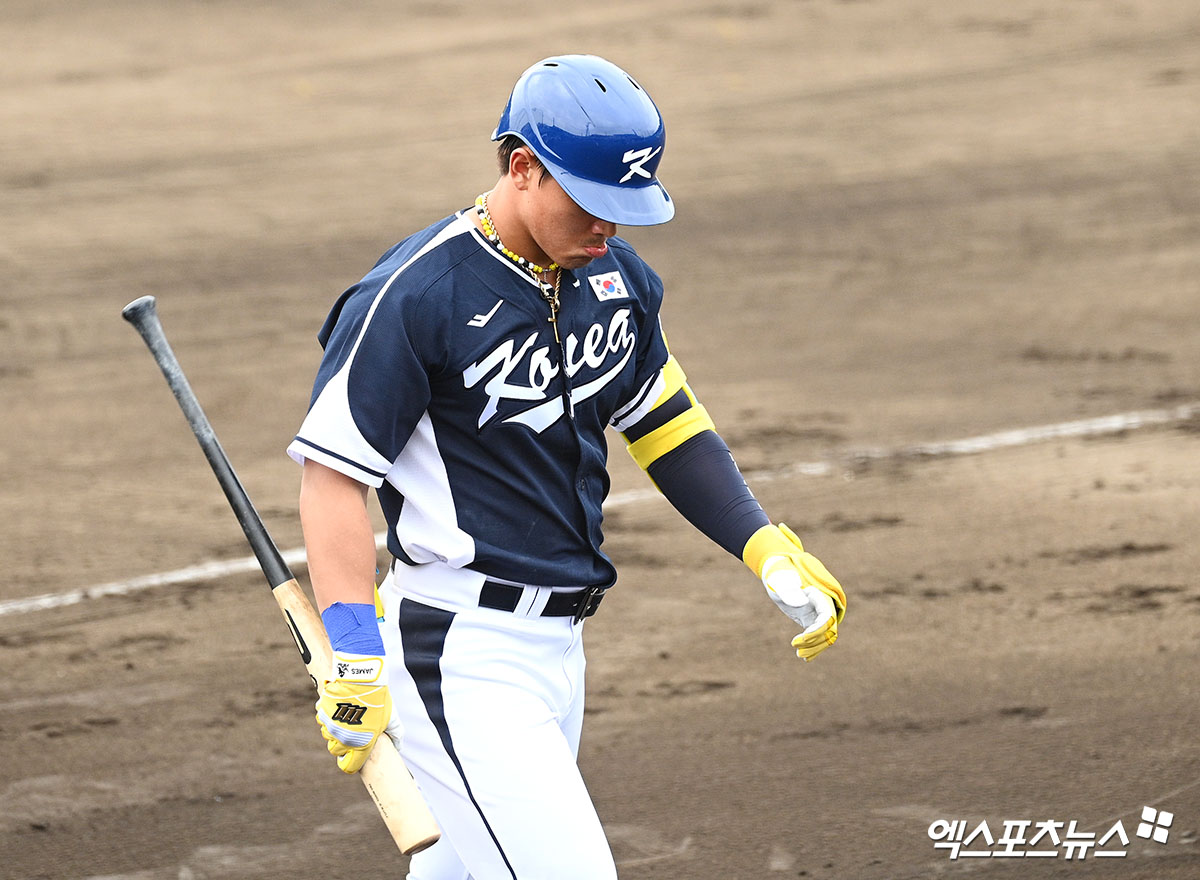 (엑스포츠뉴스 일본 오키나와, 김지수 기자) 2026 월드베이스볼클래식(WBC) 출전을 준비 중인 'K-고릴라' 안현민(KT 위즈)이 사구 이후 선수 보호 차원에서 교체됐다.