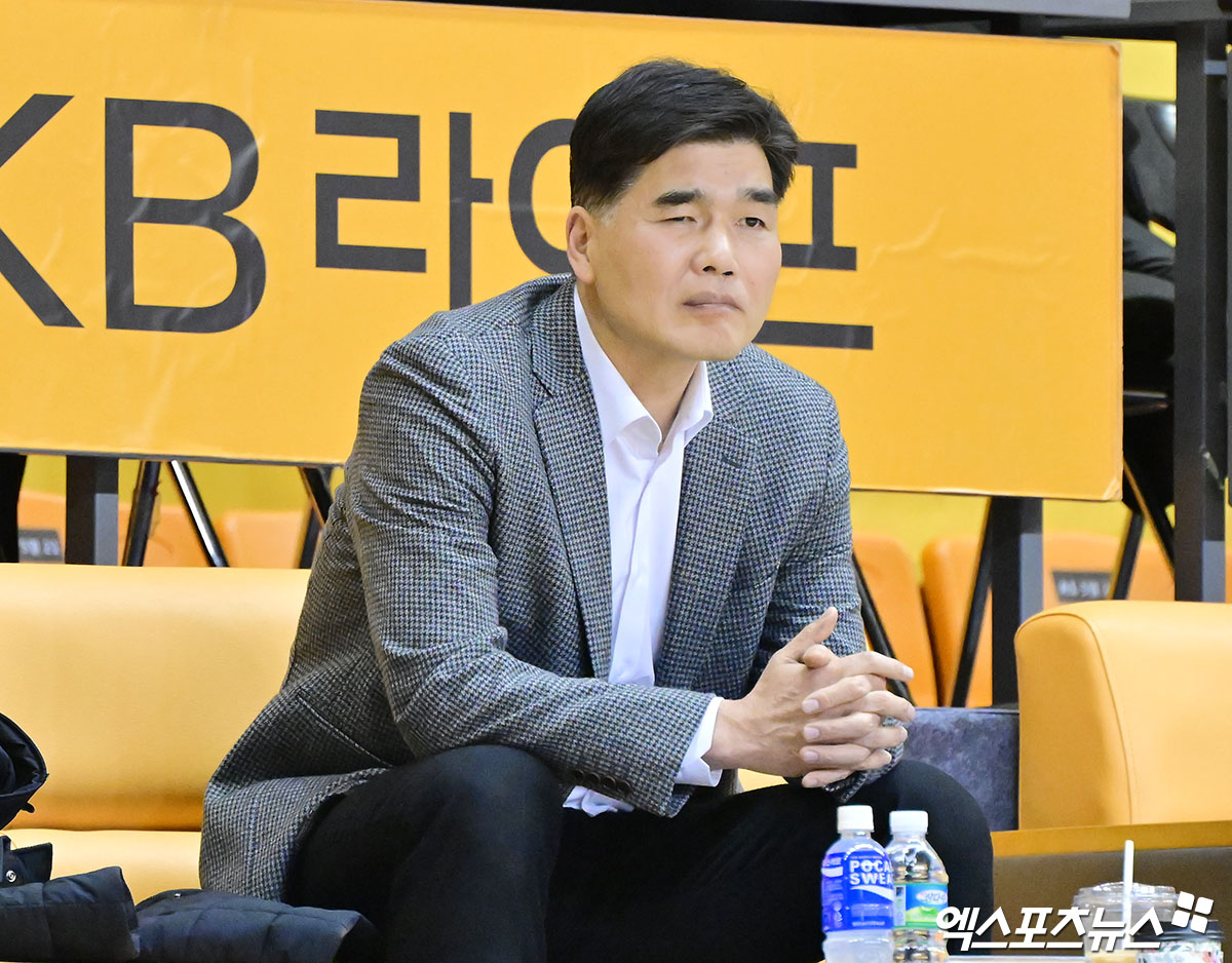 (엑스포츠뉴스 의정부, 김한준 기자) 24일 오후 경기도 의정부 경민대체육관에서 열린 '진에어 2025-2026 V-리그' KB손해보험과 삼성화재의 경기, 삼성화재 임도헌 단장이 경기를 지켜보고 있다.