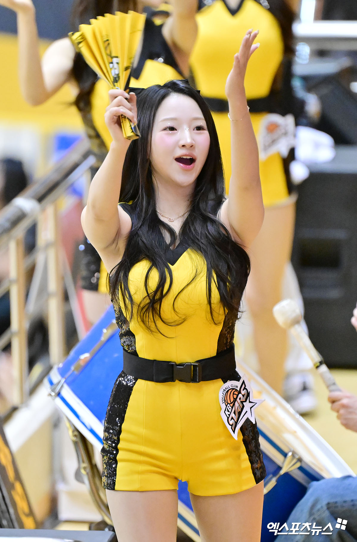 (엑스포츠뉴스 의정부, 김한준 기자) 24일 오후 경기도 의정부 경민대체육관에서 열린 '진에어 2025-2026 V-리그' KB손해보험과 삼성화재의 경기, 이연진 치어리더가 열띤 응원을 선보이고 있다.