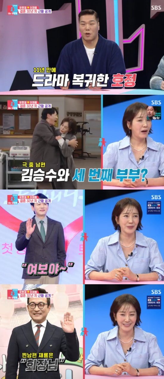 이에 유호정은 "남편으로 3번을 만나는게 쉽지 않은데, 그렇게 됐다. 그래서 승수 씨가 평소에 저한테 '여보야~'라고 부른다. 오히려 남편(이재룡)은 저를 '회장님'이라고 부른다"면서 웃었다.