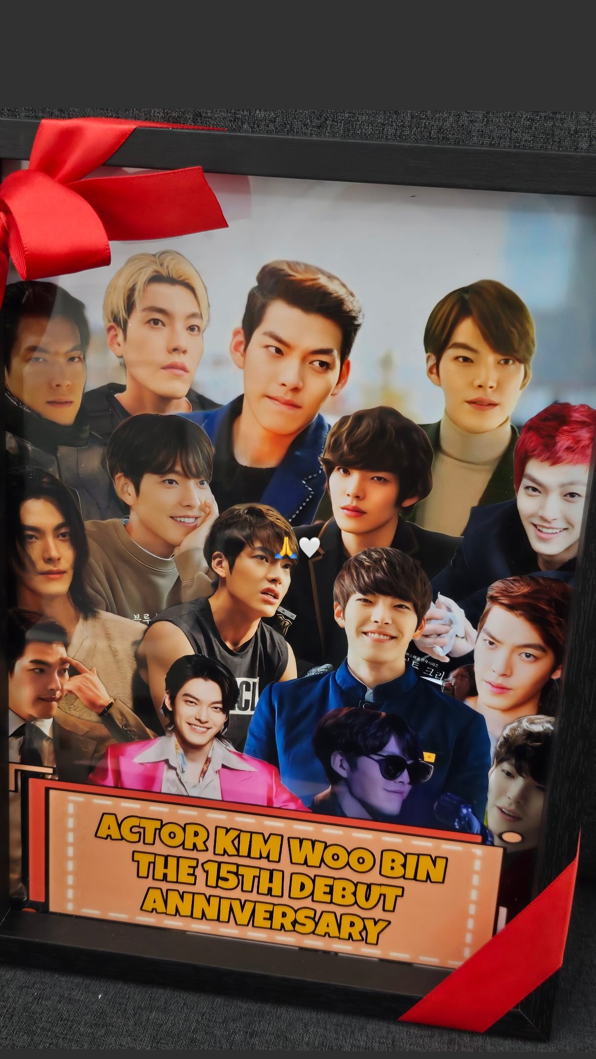 사진 속에는 김우빈의 데뷔 15주년을 맞아 지난 시간 동안 연기한 캐릭터들을 모은 특별한 선물과 꽃이 담겨 있다. 팬들이 직접 제작한 것으로 보이는 정성 가득한 선물이 감동을 자아낸다.