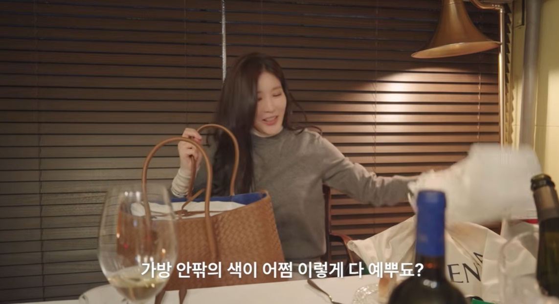이어 남편이 준비한 선물도 공개됐다. 먼저 모습을 드러낸 건 명품 브랜드 '보테가 베네타'의 구두였다. 이해리는 "진짜 내 스타일"이라며 직접 구두를 착용한 뒤 "고마워"라고 애교 섞인 목소리로 남편에게 전했다. 이를 지켜보던 강민경은 "남편 없는 사람 서러워서 살겠냐"며 부러움을 표했다.