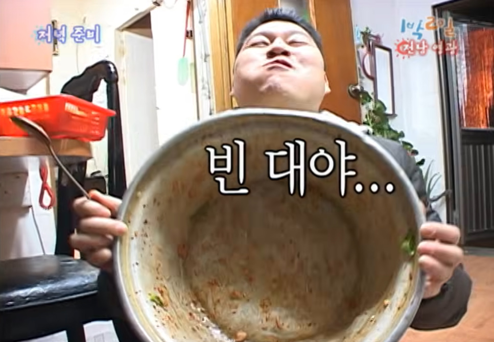 지난 2008년 2월 방송된 KBS 2TV '1박 2일'에서는 강호동이 봄동비빔밥 먹방을 펼치는 모습이 전파를 탔다. 직접 봄동을 딴 강호동은 어르신의 손맛이 듬뿍 담긴 봄동 겉절이를 맛봤고, 이내 밥까지 비벼 한 대야를 비웠다.