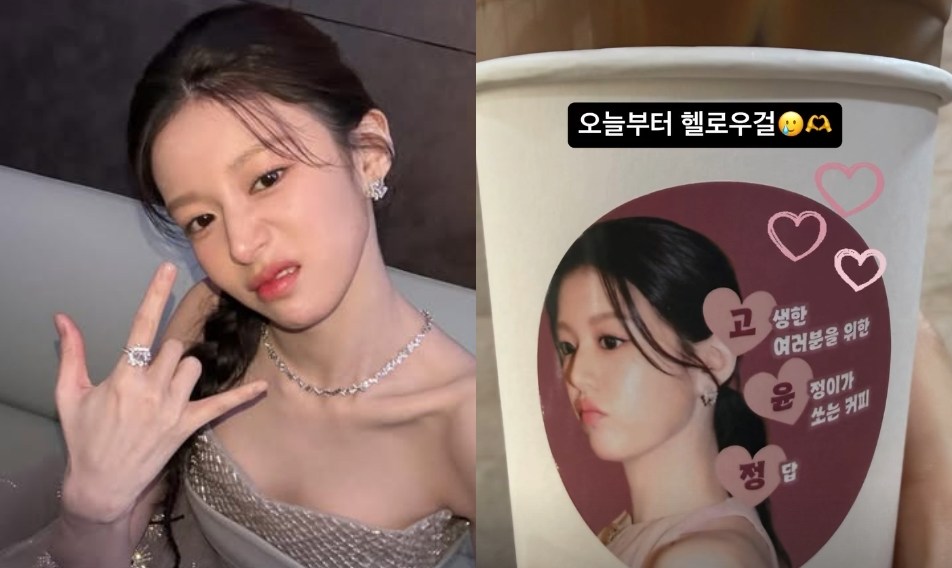 배부된 컵에는 "'고'생한 여러분들을 위한 '윤'정이가 쏘는 커피 '정'답"이라는 재치 있는 삼행시도 담겼다. 이에 고윤정은 "오늘부터 헬로우걸"이라고 화답했다.
