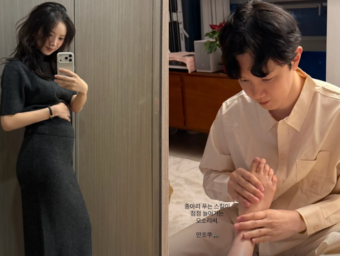 [★해시태그] 김지영, 결혼 잘했네…♥윤수영 '만삭 아내' 위해 발마사지 "스킬 늘어"