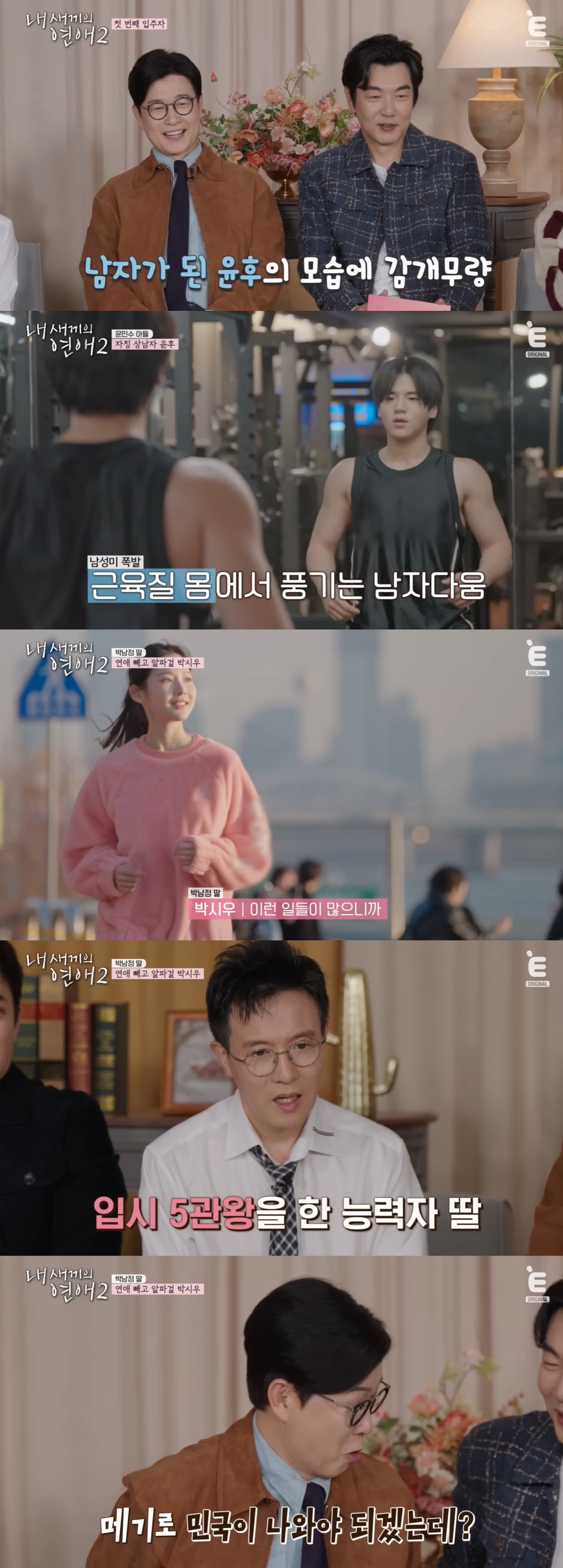 윤민수는 "잘생겼다"며 아들을 칭찬했고, 이어 헬스에 빠진 근황이 전해지며 뿌듯함을 드러냈다.