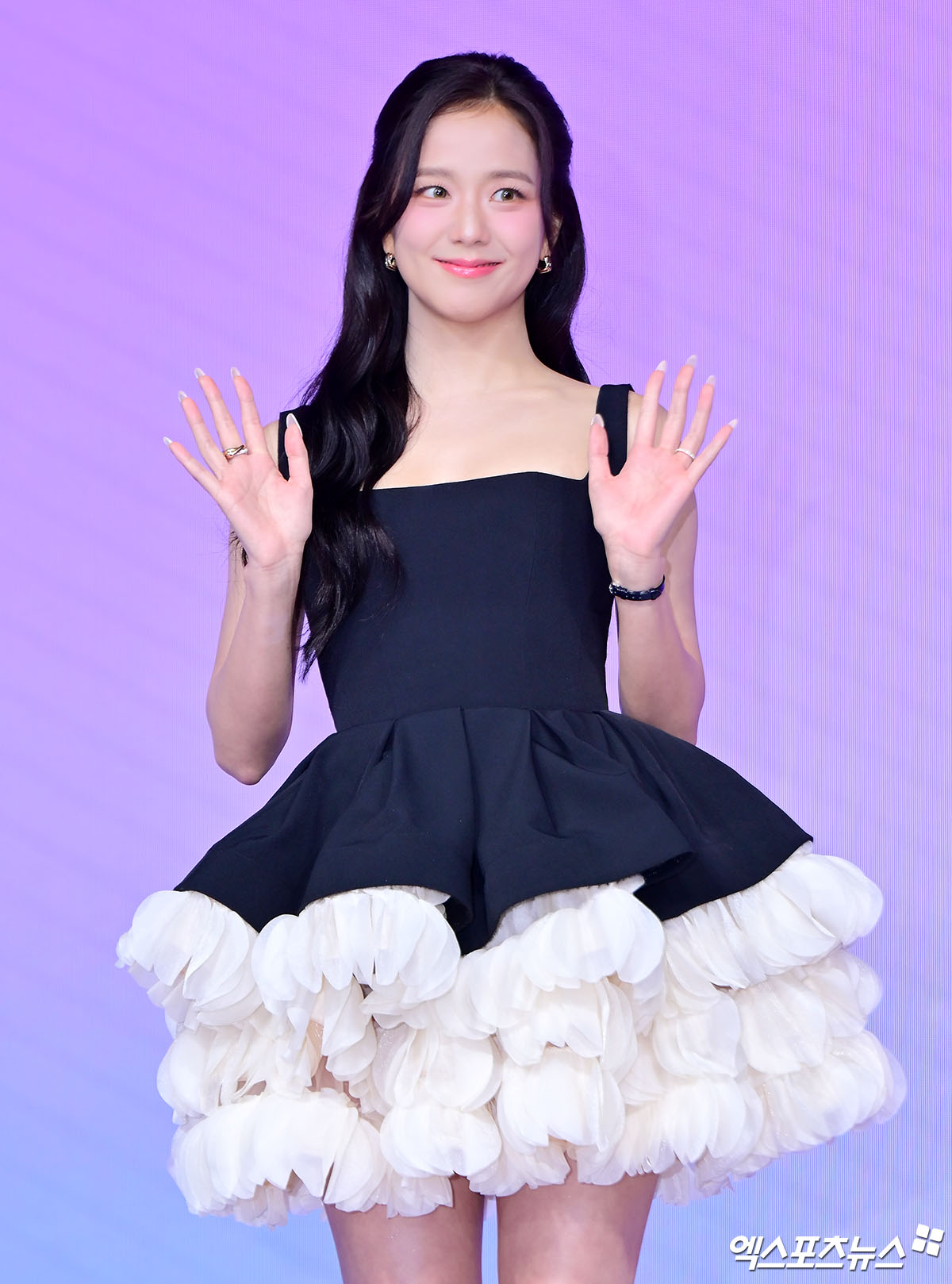 이날 '월간남친' 제작발표회에 참석한 지수가 포즈를 취하고 있다.