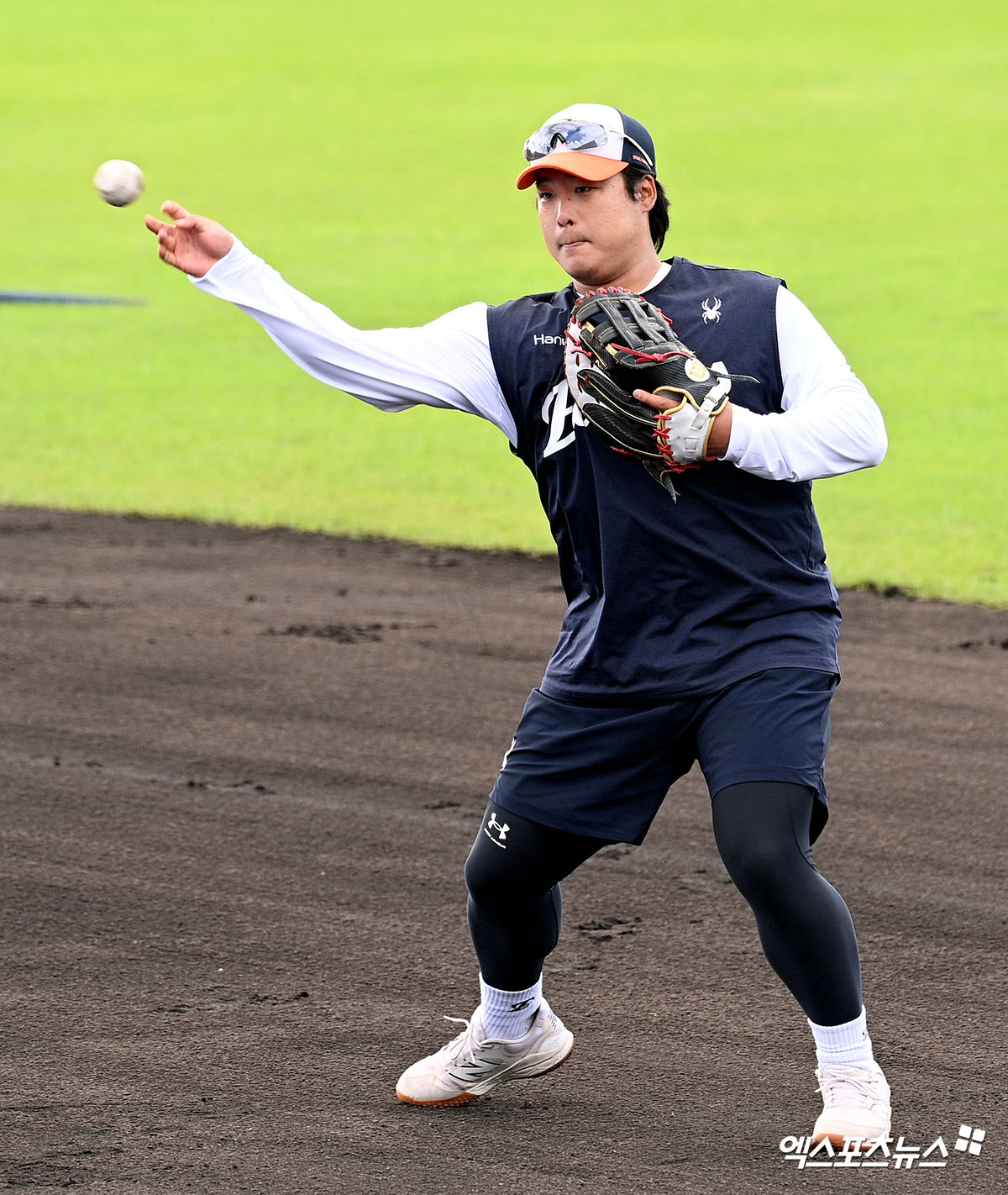 (엑스포츠뉴스 오키나와(일본), 고아라 기자) 26일 오후 일본 오키나와 나고시영 구장에서 열리는 한화 이글스와 닛폰햄 파이터스의 연습경기, 한화 강백호가 훈련에 임하고 있다.
