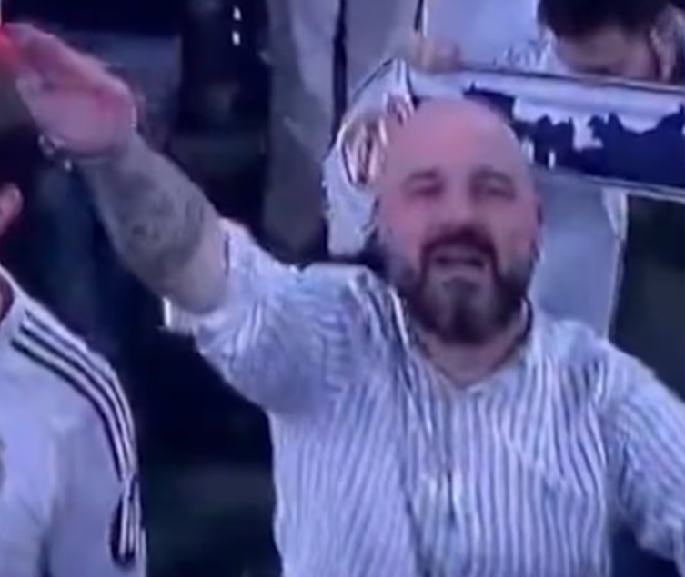 '디 애슬레틱'에 따르면 26일 레알의 홈구장 산티아고 베르나베우에서 열린 레알과 벤피카의 2025-2026시즌 UEFA 챔피언스리그 16강 플레이오프 2차전에 앞서 경기장 한켠에서 나치식 경례를 하는 듯한 행동을 보인 팬이 중계 카메라에 포착됐다.
