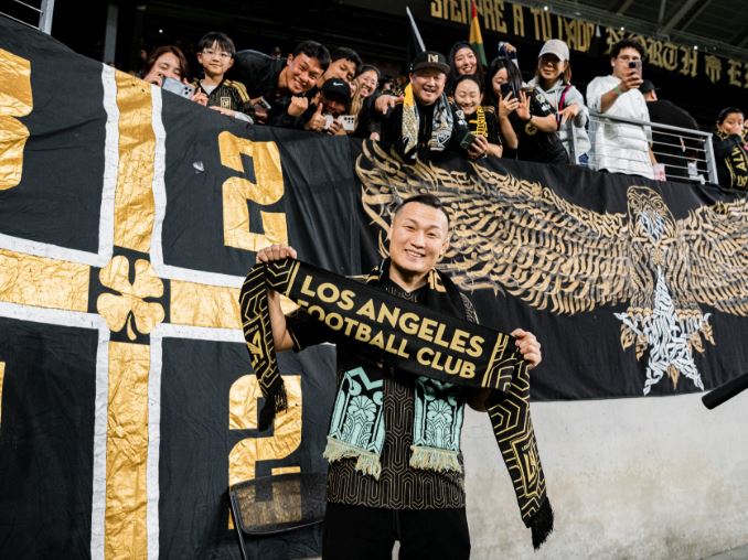LAFC 상징이 새겨진 스카프를 펼쳐 들고 환하게 웃는 모습, 그리고 손흥민과 어깨를 나란히 한 장면이 담겼다.