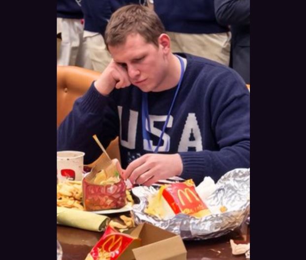 식사 자리도 마련됐다. 공개 영상에는 구체적인 메뉴가 담기지 않았지만, 이후 소셜미디어 X(구 트위터)에 올라온 게시물을 통해 맥도날드의 치즈버거가 제공된 사실이 알려졌다.
