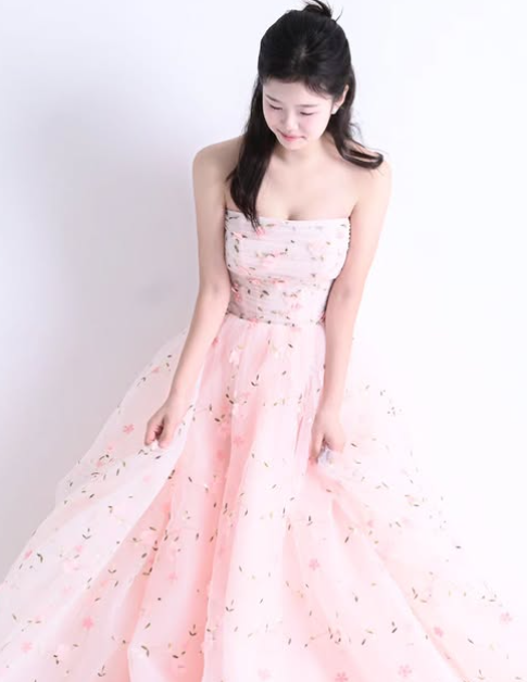 공개된 사진 속 설아는 연핑크 컬러의 튜브톱 드레스를 입고 포즈를 취하고 있다. 은은한 꽃 자수가 수놓아진 풍성한 스커트가 청초한 분위기를 자아낸다. 단아한 헤어스타일과 자연스러운 미소가 더해져 한층 성숙해진 매력을 드러냈다.