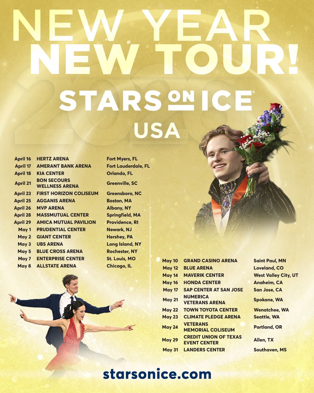 이번 투어에는 아이스댄스의 매디슨 초크와 에반 베이츠도 참여한다. 이들은 단체전 올림픽 금메달리스트이자 3회 연속 세계선수권 우승, 6회 전미 챔피언에 오른 팀이다.