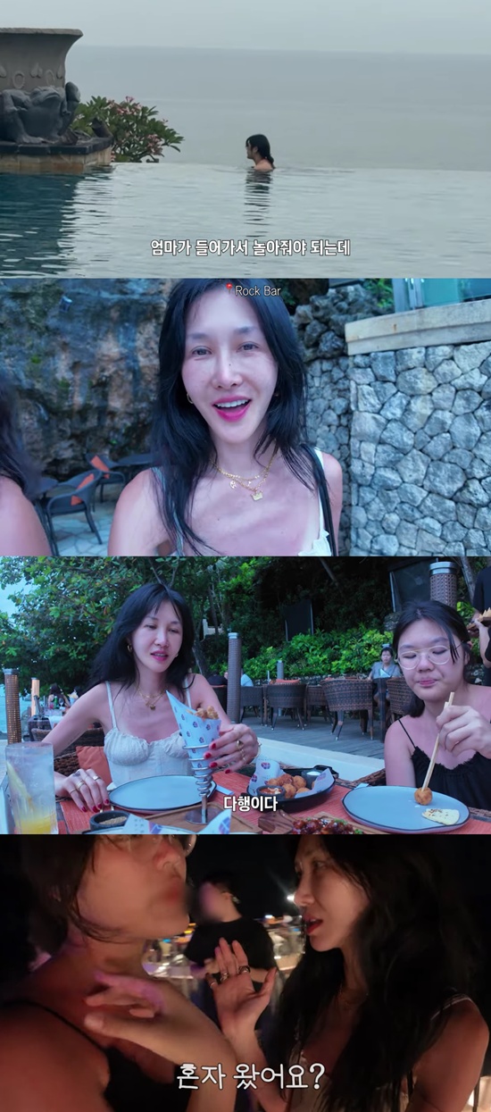 윤혜진이 딸 엄지온과 함께 단둘이 첫 발리 여행을 떠났다. 두 사람은 리조트에서 오전 수영을 즐겼다.