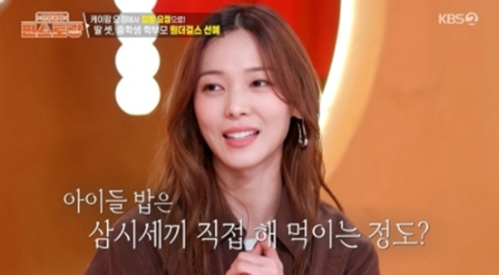 이렇게 완벽하게 자기 관리를 하는 선예는 워킹맘으로서 역할도 톡톡히 해내고 있었다. 선예는 "아이 셋 키우고 있는데 제 손으로 삼시세끼 해 먹이고 있다. 노래 안 했으면 식당 했을 것"이라고 요리 자부심을 보였다.