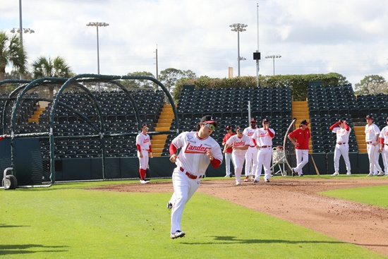 28일 라쿠텐 골든이글스 2군과 경기가 열린 일본 미야자키현 휴가시의 오쿠라마하마소호 야구장에서 취재진과 만난 최정은 "왜 한방에 3루 쪽으로 몰렸을까 이런 생각도 한다"며 웃었다.