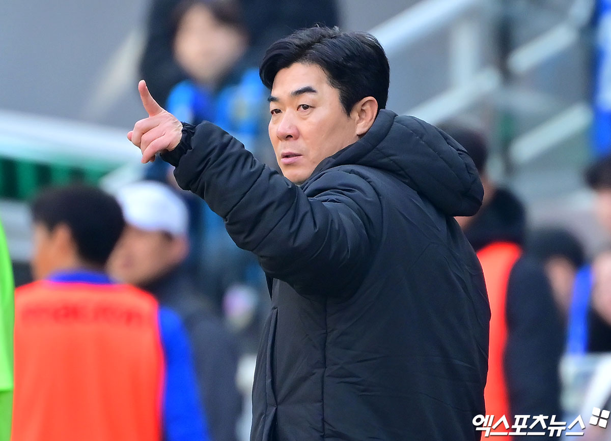 (엑스포츠뉴스 인천, 김한준 기자) 28일 오후 인천축구전용경기장에서 열린 '하나은행 K리그1 2026' 인천유나이티드와 FC서울의 경기, 인천 윤정환 감독이 작전을 지시하고 있다.