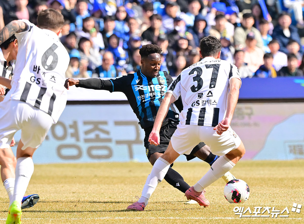 인천은 점차 볼이 돌기 시작하면서 경기 운영이 부드러워졌다. 서울도 계속해서 강한 압박으로 기회를 노렸지만, 녹록지 않았다.