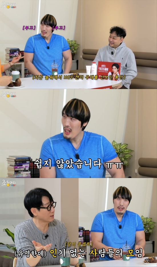 이를 듣던 김용만은 지난해 MBC 예능 '놀면 뭐하니?'(이하 '놀뭐')의 '인사모(인기 없는 사람들의 모임)'에 최홍만이 출연했던 것을 언급했다.