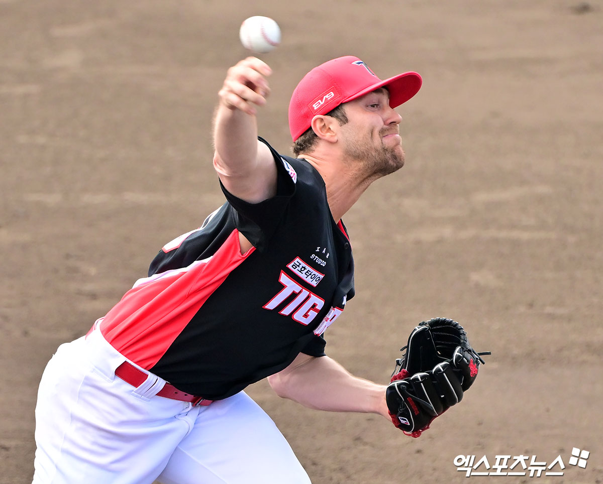 한화 상대 무사사구 KK! 이게 29억 외인 존재감인가…KIA 1선발 네일, 연습경기서 무실점 '쾌투'