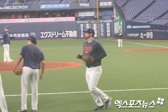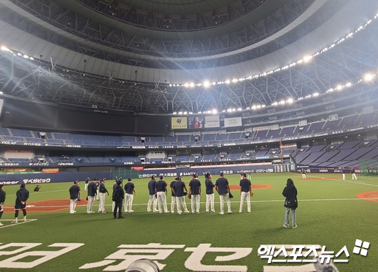 대표팀은 1일 오후 일본 오사카 교세라돔에서 공식 훈련을 소화했다. 지난달 중순부터 일본 오키나와에서 2차 캠프를 소화했던 대표팀은 이날 미국에서 건너온 주장 이정후(샌프란시스코 자이언츠), 김혜성(LA 다저스), 고우석(디트로이트 타이거즈)을 포함해 한국계 선수 데인 더닝(시애틀 매리너스), 셰이 위트컴(휴스턴 애스트로스), 저마이 존스(디트로이트)까지 완전체를 이룬 첫 훈련에 나섰다.