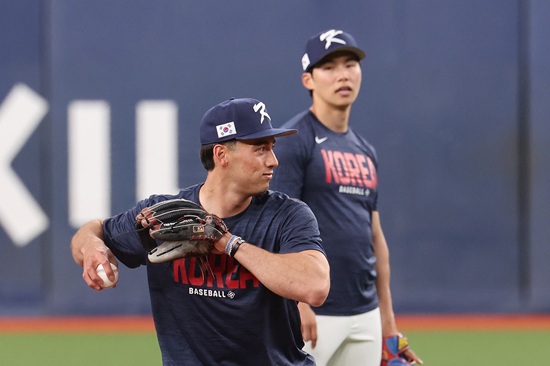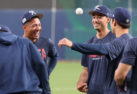 이날 주장 이정후(샌프란시스코 자이언츠)를 포함한 김혜성(LA 다저스), 고우석(디트로이트 타이거즈)과 한국계 선수 위트컴, 데인 더닝(시애틀 매리너스), 저마이 존스(디트로이트) 등 메이저리그(MLB) 소속 선수들까지 완전체를 이룬 첫 훈련이었다.