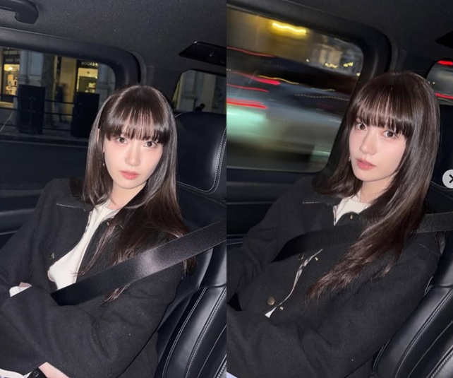 공개된 사진 속 임윤아는 차량 뒷좌석에 앉아 안전벨트를 착용한 채 카메라를 응시하고 있다.