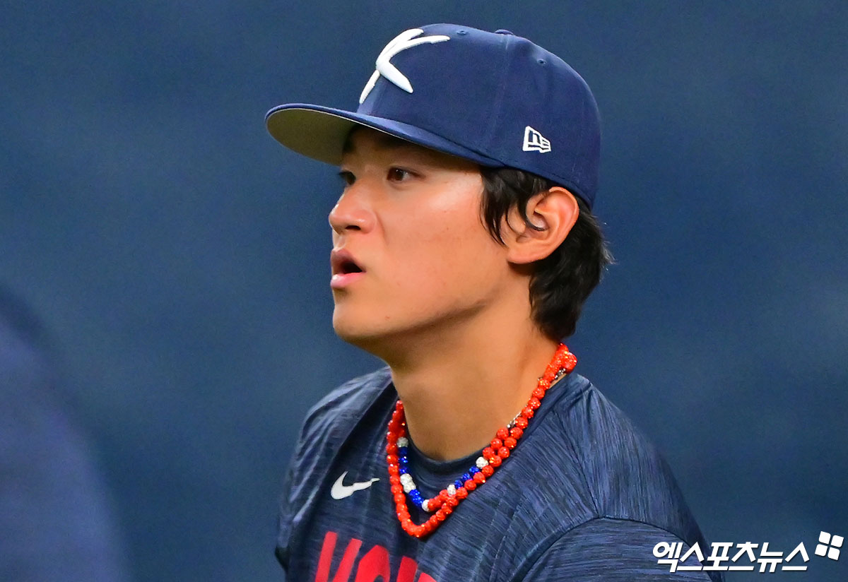 (엑스포츠뉴스 오사카(일본), 김한준 기자) 2일 오후 일본 오사카 교세라돔에서 열리는 대한민국과 한신 타이거즈의 평가전 경기, 경기 전 대한민국 김도영이 훈련에 임하고 있다.