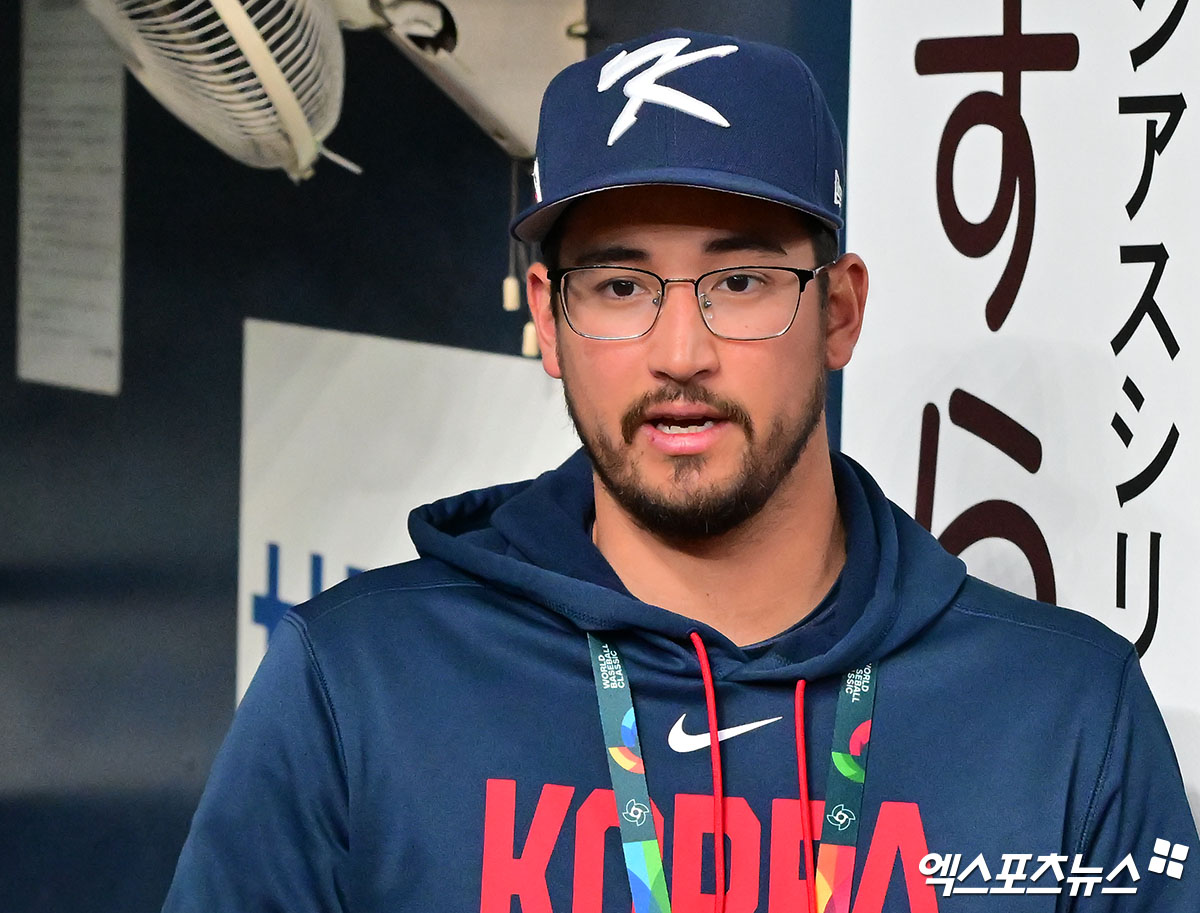 (엑스포츠뉴스 오사카(일본), 김한준 기자) 2일 오후 일본 오사카 교세라돔에서 열리는 대한민국과 한신 타이거즈의 평가전 경기, 경기 전 대한민국 더닝이 코칭스태프와 대화를 나누고 있다.