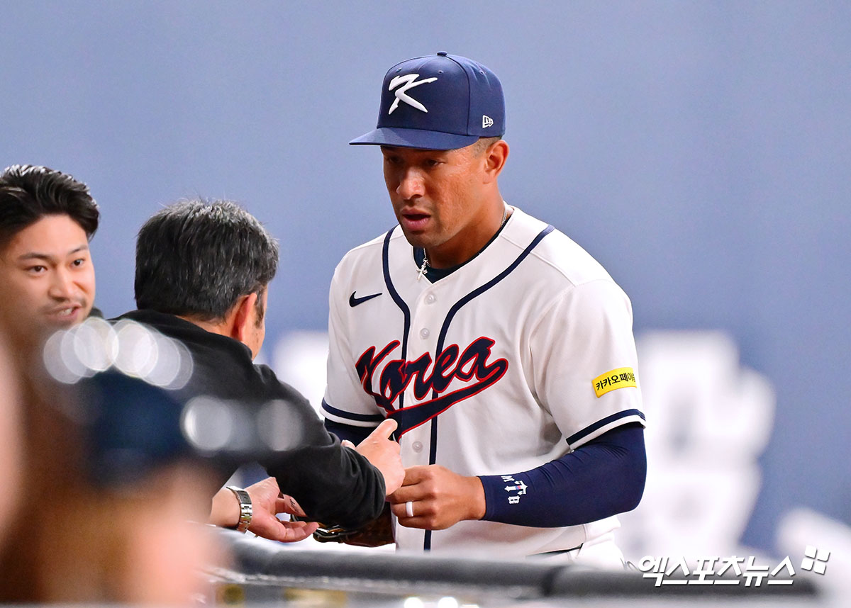 (엑스포츠뉴스 오사카(일본), 김한준 기자) 2일 오후 일본 오사카 교세라돔에서 열린 대한민국과 한신 타이거즈의 평가전 경기, 경기 전 대한민국 존스이 팬들에게 사인을 해주고 있다.