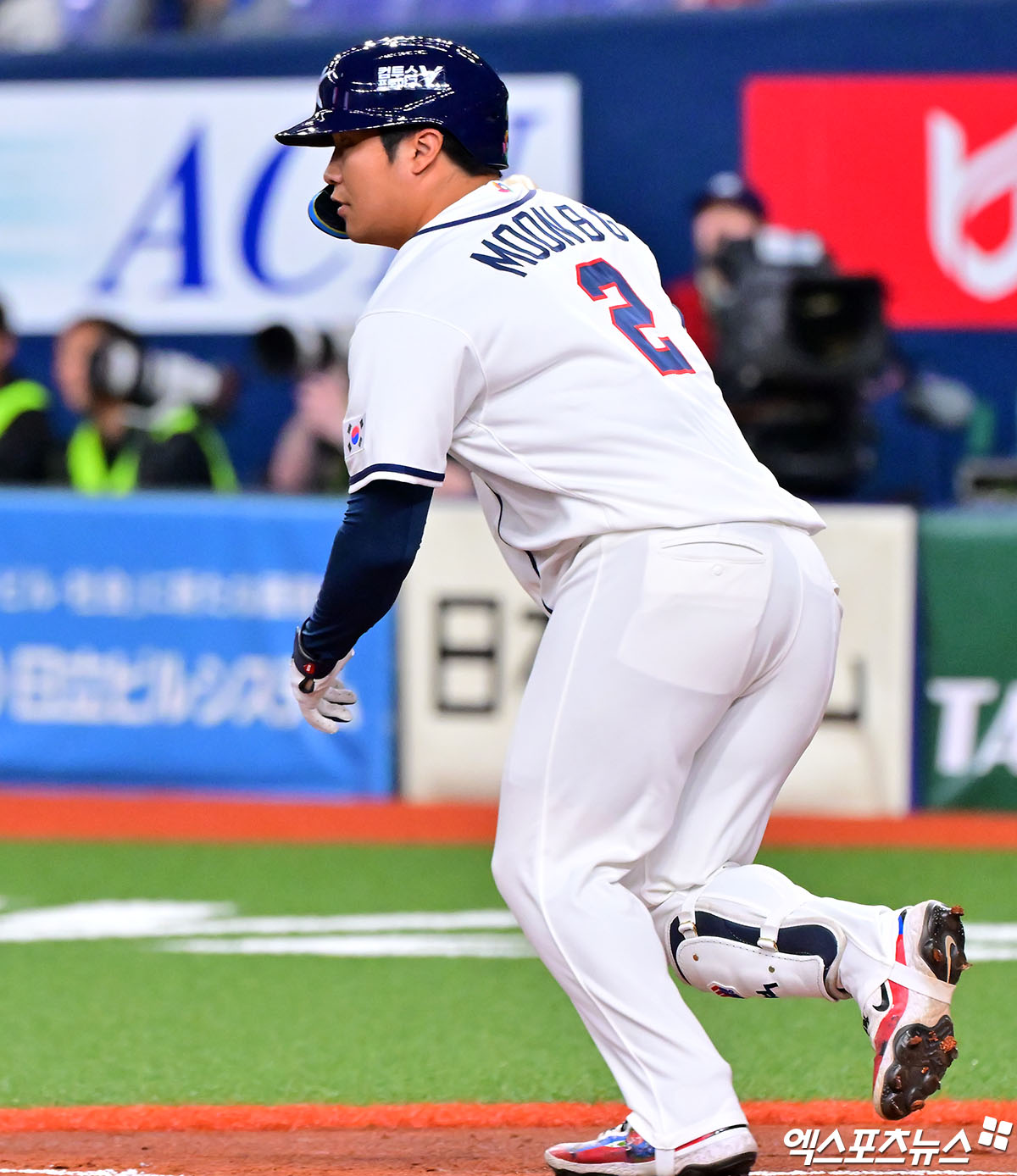 (엑스포츠뉴스 오사카(일본), 김한준 기자) 2일 오후 일본 오사카 교세라돔에서 열린 대한민국과 한신 타이거즈의 평가전 경기, 1회초 2사 1,2루 대한민국 문보경이 1타점 적시타를 날리고 있다.