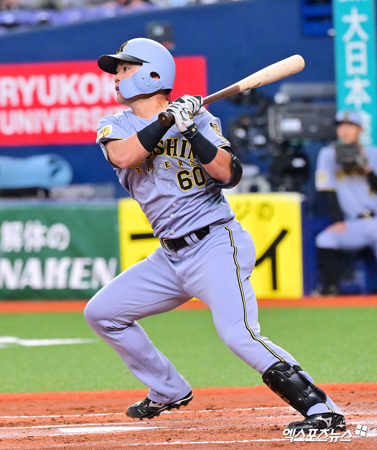 (엑스포츠뉴스 오사카(일본), 김한준 기자) 2일 오후 일본 오사카 교세라돔에서 열린 대한민국과 한신 타이거즈의 평가전 경기, 2회말 2사 1루 한신 오노데라가 동점 적시타를 날리고 있다.