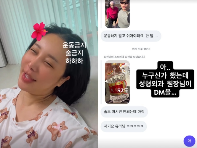 대화 속 의사는 랄랄이 등산을 인증한 영상에 "운동하지 말고 쉬어야 돼요. 한 달..."이라는 조언의 답장을 남겼고, 이어 52도의 술을 인증하자 "술도 마시면 안 되는데 아직. 저기요 유라님 ㅋㅋㅋㅋㅋ"이라며 답장을 보냈다.