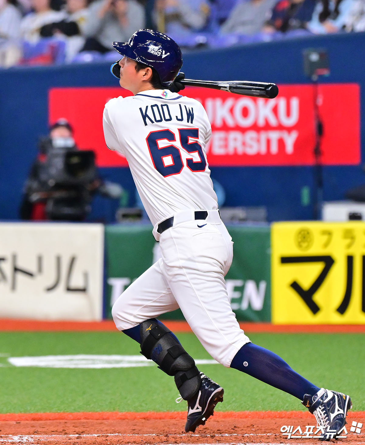 (엑스포츠뉴스 오사카(일본), 김한준 기자) 2일 오후 일본 오사카 교세라돔에서 열린 대한민국과 한신 타이거즈의 평가전 경기, 7회초 1사 대한민국 구자욱이 타격을 하고 있다.