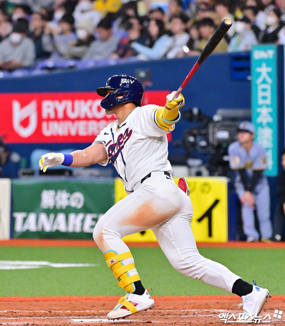 (엑스포츠뉴스 오사카(일본), 김한준 기자) 2일 오후 일본 오사카 교세라돔에서 열린 대한민국과 한신 타이거즈의 평가전 경기, 8회초 1사 대한민국 안현민이 타격을 하고 있다.