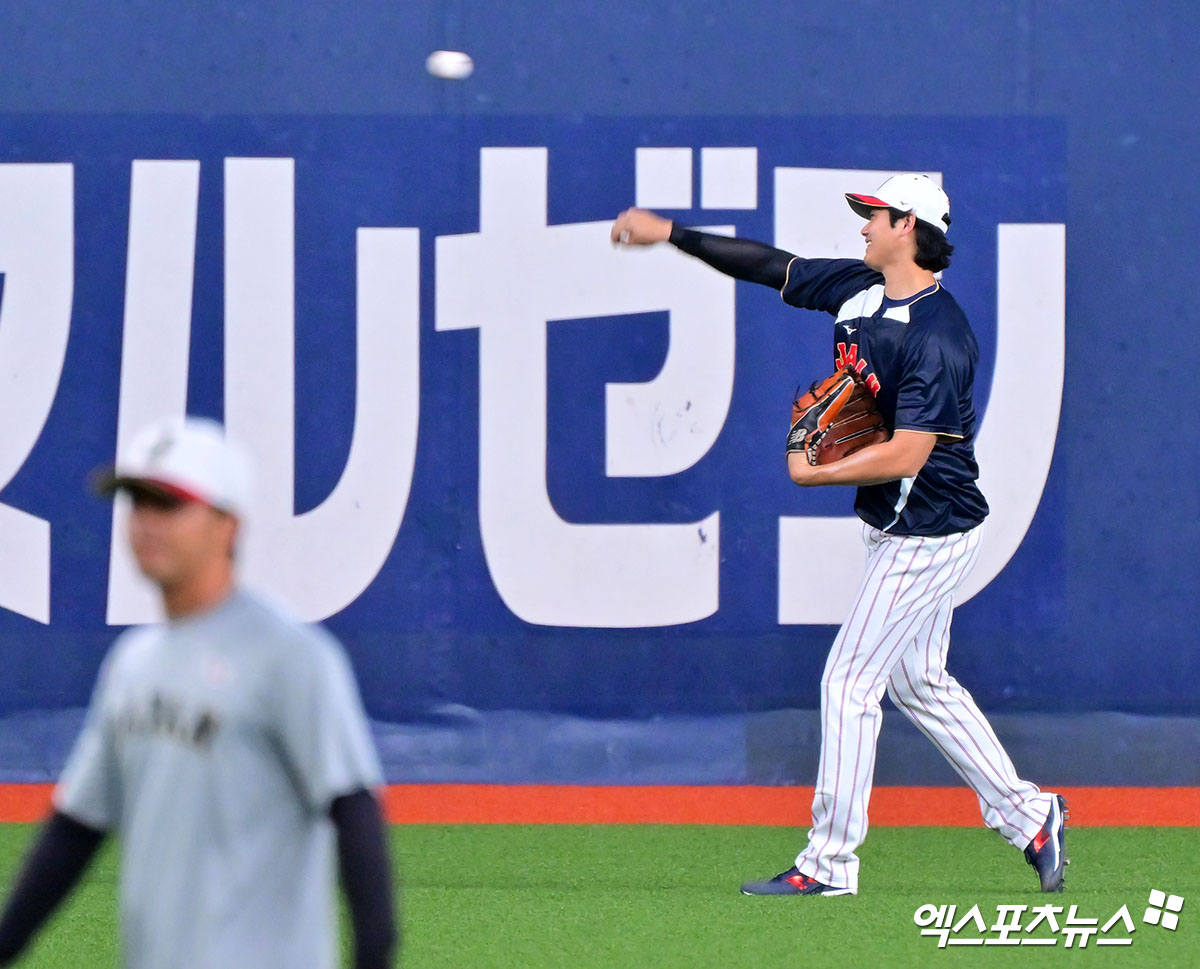 (엑스포츠뉴스 오사카(일본), 김한준 기자) 2일 오후 일본 오사카 교세라돔에서 열린 일본과 오릭스 버팔로스의 평가전 경기, 일본 오타니가 훈련에 임하고 있다.