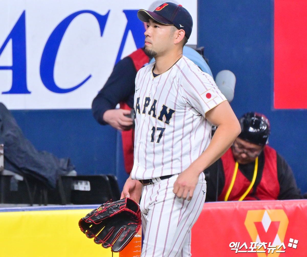 (엑스포츠뉴스 오사카(일본), 김한준 기자) 2일 오후 일본 오사카 교세라돔에서 열린 일본과 오릭스 버팔로스의 평가전 경기, 일본 선발투수 기쿠치가 웜업을 마치고 더그아웃으로 향하고 있다.