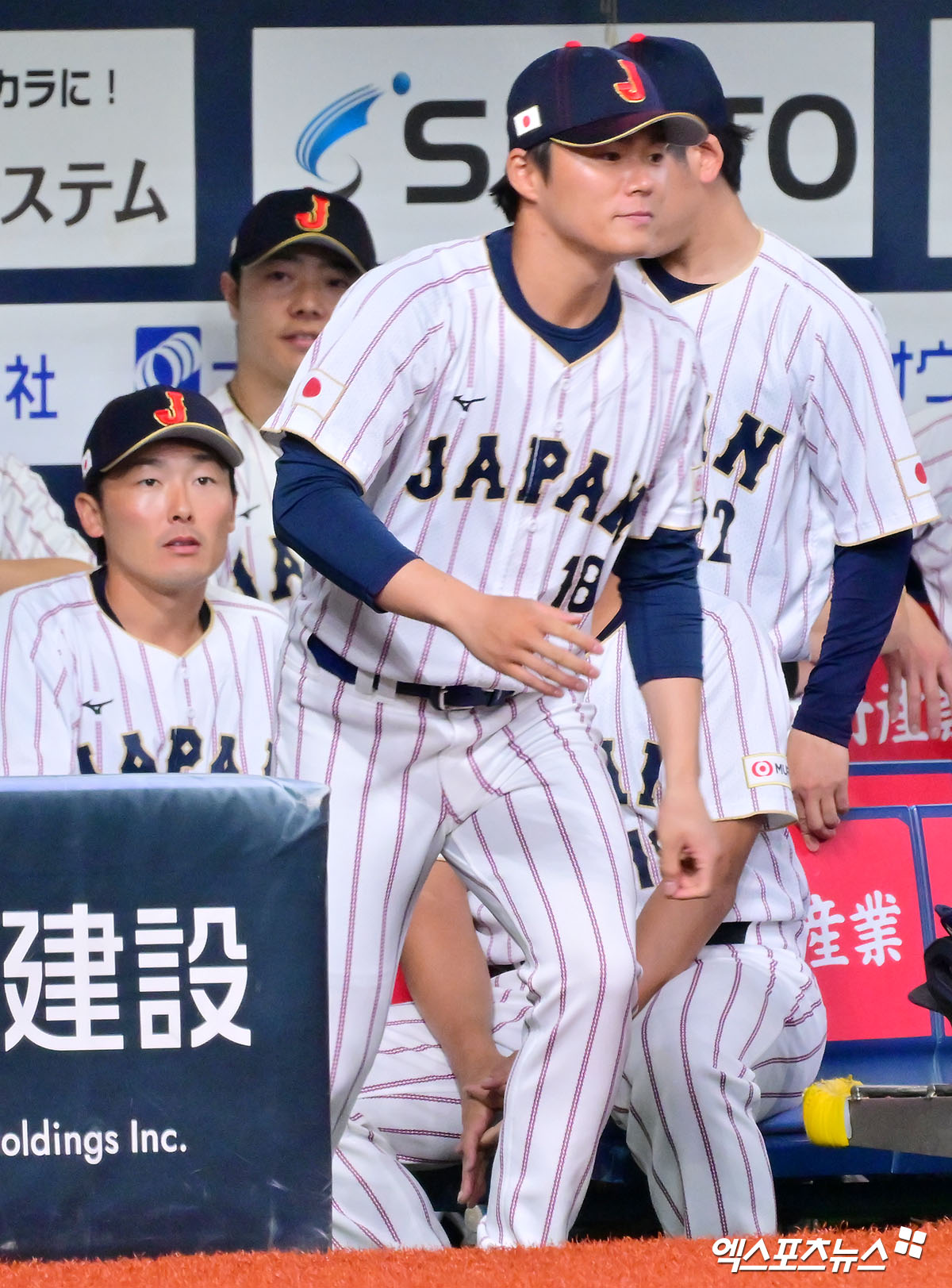 (엑스포츠뉴스 오사카(일본), 김한준 기자) 2일 오후 일본 오사카 교세라돔에서 열린 일본과 오릭스 버팔로스의 평가전 경기, 일본 야마모토가 그라운드에 도열하고 있다.
