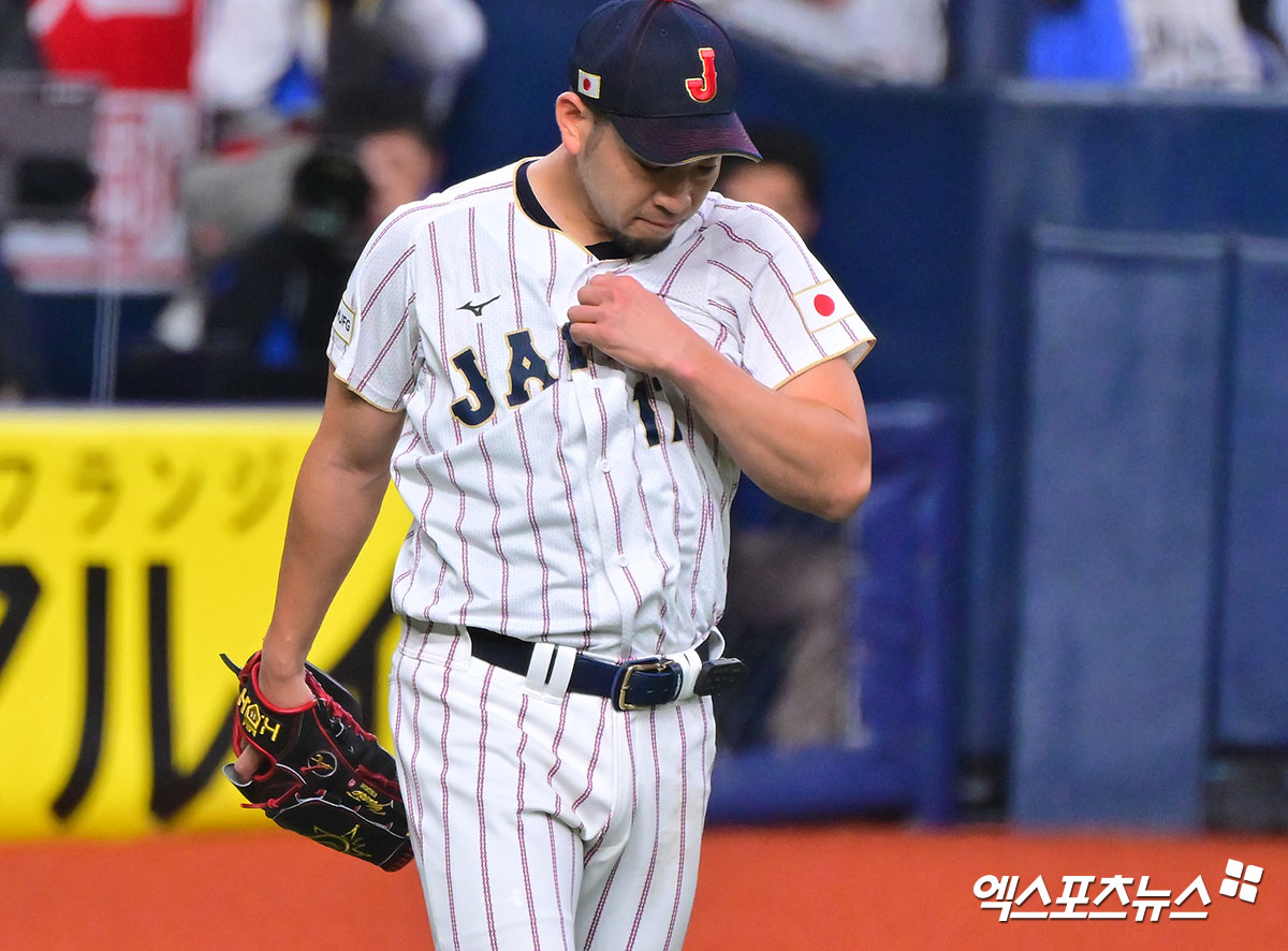 (엑스포츠뉴스 오사카(일본), 김한준 기자) 2일 오후 일본 오사카 교세라돔에서 열린 일본과 오릭스 버팔로스의 평가전 경기, 1회말 1사 1,3루 일본 기쿠치가 오릭스 스기모토에게 적시타를 허용한 후 아쉬워하고 있따.