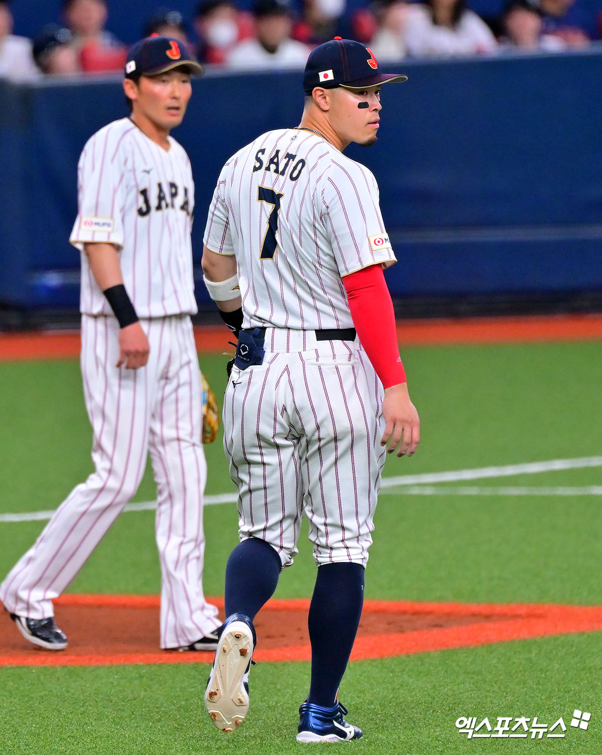 (엑스포츠뉴스 오사카(일본), 김한준 기자) 2일 오후 일본 오사카 교세라돔에서 열린 일본과 오릭스 버팔로스의 평가전 경기, 1회말 일본 사토가 송구 실책을 하고 있다.