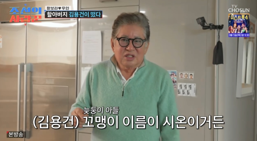 2일 방송된 TV조선 '조선의 사랑꾼'에서는 배우 김용건이 늦둥이 아들 시온에 대한 애정을 드러내며, 손주 우인·며느리 황보라와의 단란한 일상을 공개했다.