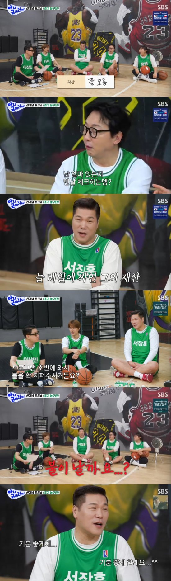 2일 방송된 SBS 예능 프로그램 '아니 근데 진짜!'에서는 서장훈이 출연해 4MC 탁재훈, 이상민, 이수지, 카이와 만났다.