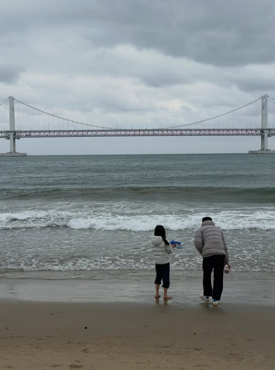 옥순은 2일 자신의 SNS에 “갑자기 날씨가 엄청 추워졌어요. 바람도 많이 불고.. 아무리 설명해 줘도 아이들이 바다에 가야겠다고 난리라서 겪어봐야 가잔 소릴 안 하겠다 싶어 데리고 나갔는데…. 웬걸.. 착각이었어요. 잘 놀더라고요”라는 글과 함께 사진을 게재했다.