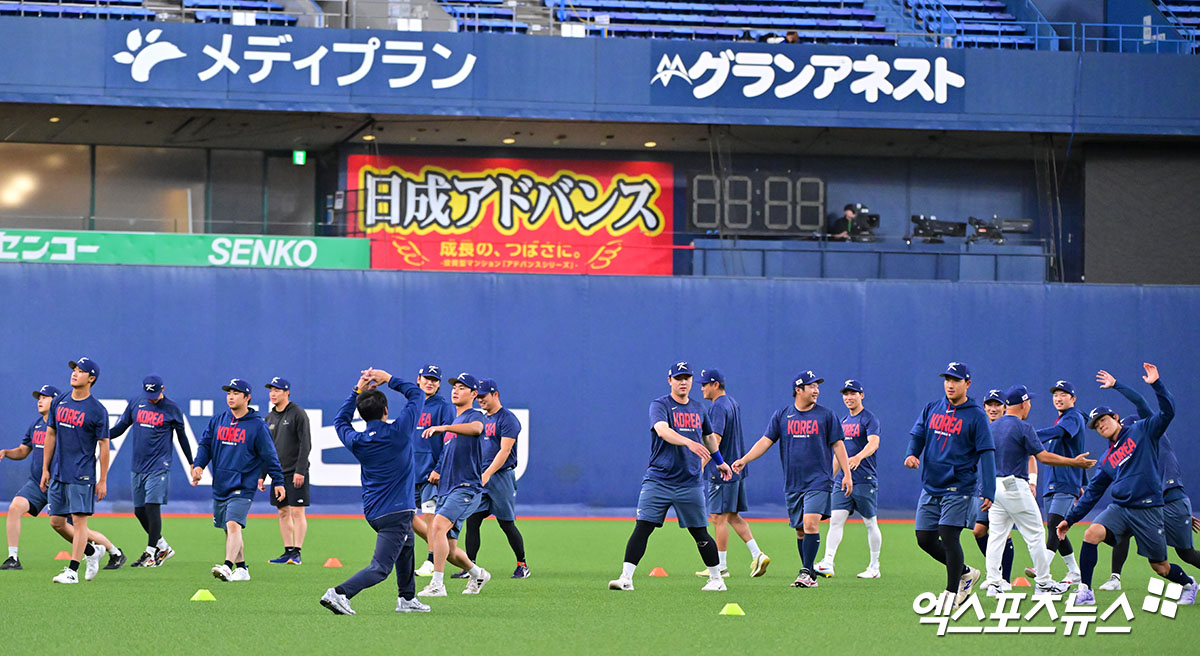 오릭스 전 앞두고 몸푸는 한국 선수들[포토]