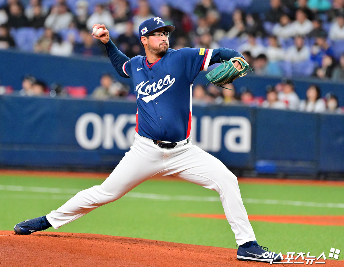 (엑스포츠뉴스 오사카(일본), 김한준 기자) 3일 오후 일본 오사카 교세라돔에서 열린 한국과 오릭스 버팔로스의 평가전 경기, 1회말 한국 선발투수 데인 더닝이 공을 힘차게 던지고 있다.