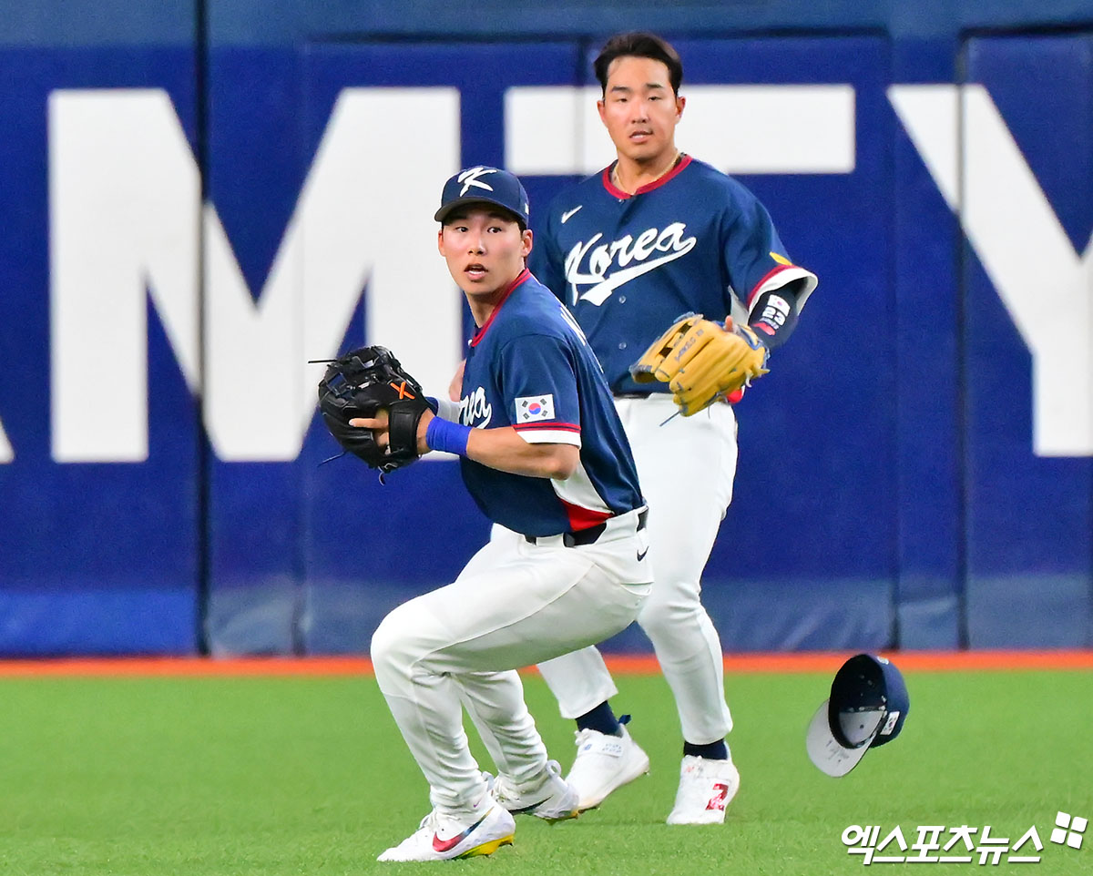 (엑스포츠뉴스 오사카(일본), 김한준 기자) 3일 오후 일본 오사카 교세라돔에서 열린 한국과 오릭스 버팔로스의 평가전 경기, 3회말 무사 1,3루 한국 김혜성이 타구를 잡고 있다.